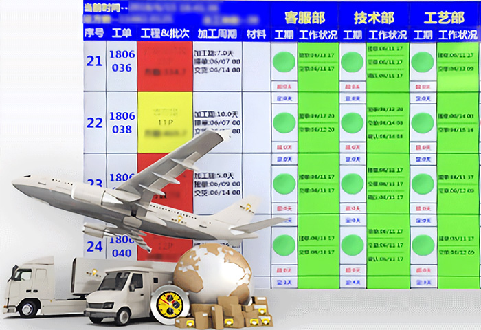 正一金屬科技為實現(xiàn)100%按期交付,自主開發(fā)交期監(jiān)管APP軟件,實時掌握訂單信息,智能遠程生產(chǎn)、物流進度及狀況監(jiān)控管理,結(jié)合成熟的物流管理體系,確保能在約定交期之前,完成產(chǎn)品交付。